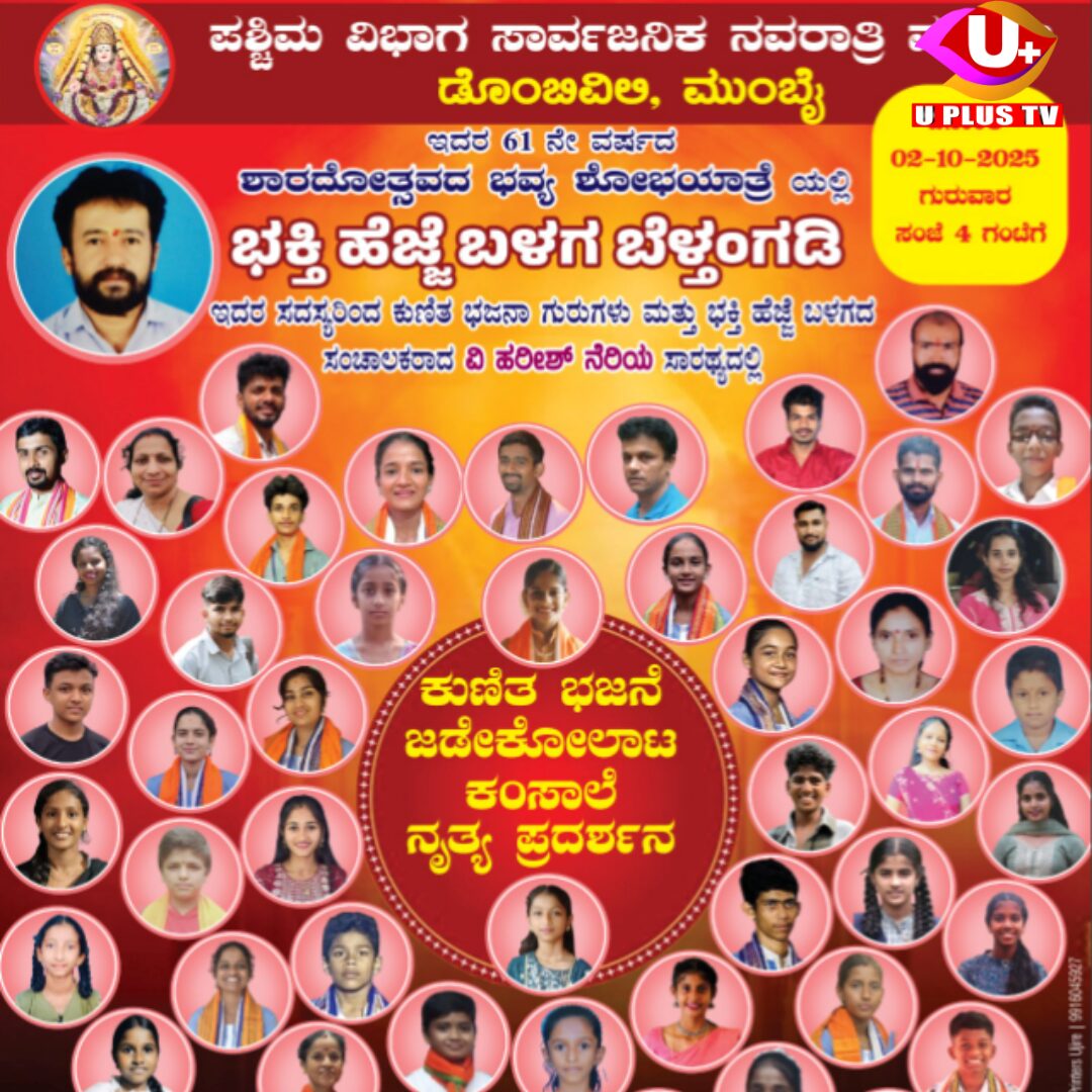 ಬೆಳ್ತಂಗಡಿ: ಪಶ್ಚಿಮ ವಿಭಾಗ ಸಾರ್ವಜನಿಕ ನವರಾತ್ರಿ ಮಂಡಳಿ ಡೊಂಬಿವಿಲಿ ಮುಂಬೈ ಇದರ 61 ನೇ ವರ್ಷದ ಶಾರದೋತ್ಸವದ ಭವ್ಯ ಶೋಭಯಾತ್ರೆಯು ಅಕ್ಟೋಬರ್ 2 ರಂದು ನಡೆಯಲಿದ್ದು, ಈ ಶೋಭಯಾತ್ರೆಯಲ್ಲಿ ಕುಣಿತ ಭಜನೆ, ಜಡೆ ಕೋಲಾಟ,