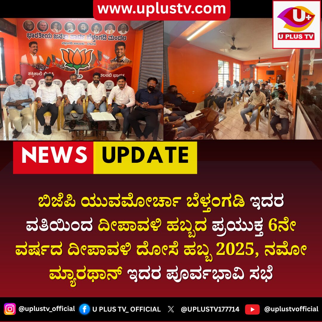 ಬೆಳ್ತಂಗಡಿ (ಅ.08) ಬಿಜೆಪಿ ಯುವಮೋರ್ಚಾ ಬೆಳ್ತಂಗಡಿ ಇದರ ವತಿಯಿಂದ ದೀಪಾವಳಿ ಹಬ್ಬದ ಪ್ರಯುಕ್ತ ಅಕ್ಟೋಬರ್ 20 ಸೋಮವಾರದಂದು ನಡೆಯುವ 6 ನೇ ವರ್ಷದ ದೀಪಾವಳಿ ದೋಸೆ ಹಬ್ಬ 2025 ಇದರ ಪೂರ್ವಭಾವಿ ಸಭೆಯೂ ಅಕ್ಟೋಬರ್ 08 ರಂದು ಪಕ್ಷದ ಕಚೇರಿಯಲ್ಲಿ ನಡೆಯಿತು. ಮೋದಿಜೀ 75 ನೇ ಹುಟ್ಟುಹಬ್ಬದ ಪ್ರಯುಕ್ತ ನಮೋ ಮ್ಯಾರಥಾನ್, ಕಾರ್ಯಕ್ರಮದ ರೂಪುರೇಷೆ, ಜವಾಬ್ದಾರಿ ಹಂಚಿಕೆ, ವಿವಿಧ ಕಾರ್ಯಕ್ರಮ ಆಯೋಜನೆ ಬಗ್ಗೆ ವಿಸ್ಕೃತವಾಗಿ ಚರ್ಚಿಸಲಾಯಿತು.