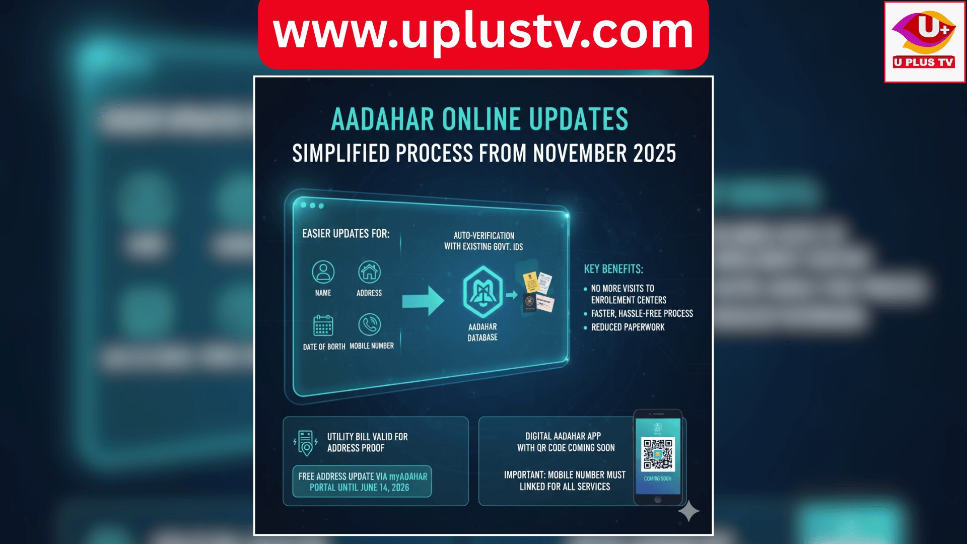 ವರದಿಗಳ ಪ್ರಕಾರ, ನವೆಂಬರ್ 2025 ರಿಂದ ಈ ಹೊಸ ಆನ್‌ಲೈನ್ ವ್ಯವಸ್ಥೆ ಜಾರಿಗೆ ಬರಲಿದ್ದು, ಇದು ಕಾಗದಪತ್ರಗಳ ಕೆಲಸವನ್ನು ಕಡಿಮೆ ಮಾಡುತ್ತದೆ ಮತ್ತು ದೃಢೀಕರಣ ಪ್ರಕ್ರಿಯೆಯನ್ನು ತ್ವರಿತಗೊಳಿಸುತ್ತದೆ. ಇದರ ಪ್ರಮುಖ ಪ್ರಯೋಜನವೆಂದರೆ, ಹೆಚ್ಚಿನ ನವೀಕರಣಗಳಿಗಾಗಿ ಜನರು ಇನ್ನು ಮುಂದೆ ಆಧಾರ್ ನೋಂದಣಿ ಕೇಂದ್ರಗಳಿಗೆ ಭೇಟಿ ನೀಡುವ ಅಗತ್ಯವಿರುವುದಿಲ್ಲ.