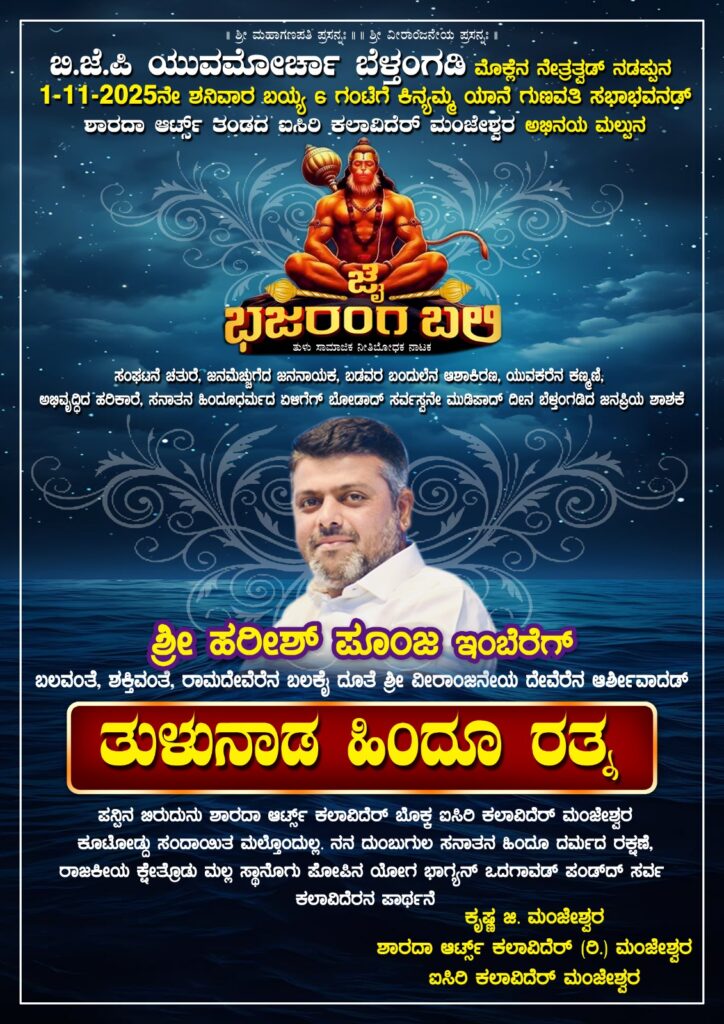 ಬೆಳ್ತಂಗಡಿ : (ನ. 02) ಬಿಜೆಪಿ ಯುವಮೋರ್ಚಾ ಬೆಳ್ತಂಗಡಿ ಮಂಡಲ ವತಿಯಿಂದ ದೀಪಾವಳಿ ಹಬ್ಬದ ಪ್ರಯುಕ್ತ ನಡೆದ 6ನೇ ವರ್ಷದ ದೋಸೆಹಬ್ಬ ಕಾರ್ಯಕ್ರಮದಲ್ಲಿ ಪ್ರದರ್ಶನ ನಡೆಯುತ್ತಿದ್ದ ವೇಳೆ ಪೊಲೀಸರು ತಡೆಗೊಳಿಸಿದ ತುಳು ಸಾಮಾಜಿಕ ನೀತಿಬೋಧಕ ಜೈ ಭಜರಂಗ ಬಲಿ ತುಳು ನಾಟಕ ನವೆಂಬರ್ 01 ರಂದು ಸಂಜೆ 06 ಗಂಟೆಗೆ ಸರಿಯಾಗಿ ಬೆಳ್ತಂಗಡಿ ಕಿನ್ಯಮ್ಮ ಯಾನೆ ಗುಣವತಿ ಅಮ್ಮ ಸಭಾಭವನ ಜೈನ್ ಪೇಟೆಯಲ್ಲಿ ಅಪಾರ ಜನಸ್ತೋಮದ ನಡುವೆ ಯಶಸ್ವಿ ಪ್ರದರ್ಶನಗೊಂಡಿತು.